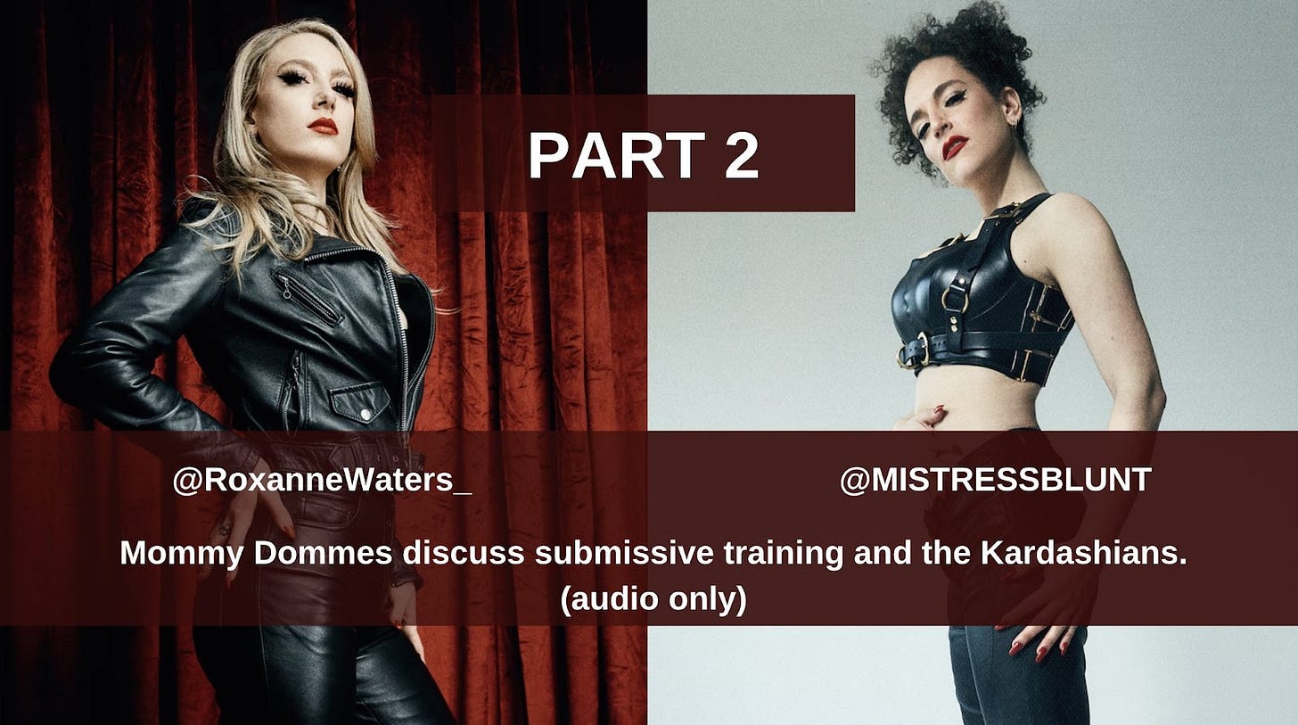 Mommy Roxanne Waters and I locked a submissive in the basement and recorded a 1-hour podcast about our Mommy Domme dynamics and how we would dominate each of the Kardashian sisters. (I promise you want to know what I’d do to Kourtney.)